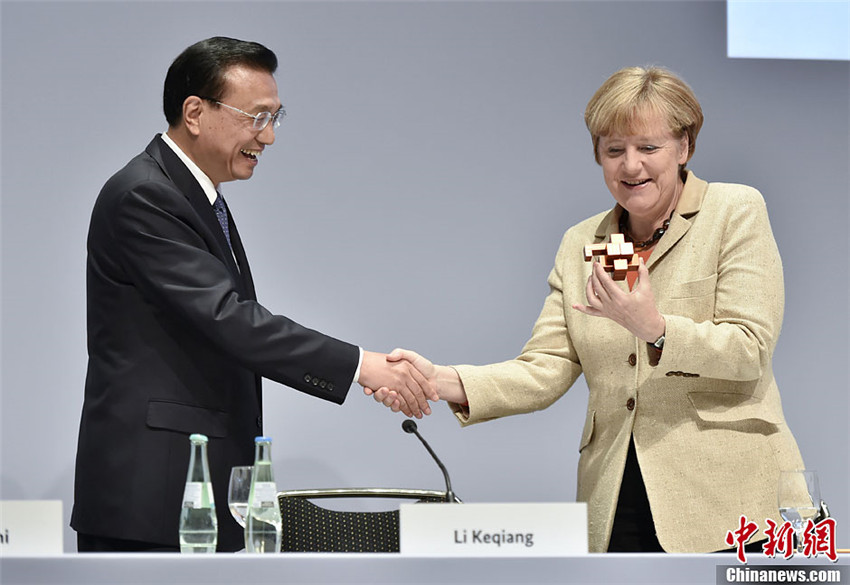 Auf dem deutsch-chinesischen Wirtschaftsforum am 10. Oktober schenkt Li Bundeskanzlerin Angela Merkel einen Luban-Knoten. Der Knoten wurde von Studenten des Tianjin Sino-German Vocational Technical College hergestellt. Laut Li symbolisiert der Knoten die vertiefte Zusammenarbeit zwischen China und Deutschland.