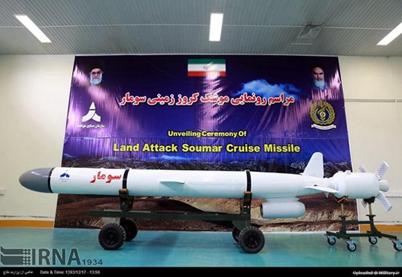 Der Iran stellt der ?ffentlichkeit seine neu entwickelte Langstreckenrakete mit Namen ?Soumar“ vor. Dieser bodengestützte Marschflugk?rper ?hnelt dem berühmten russischen Modell KH-55. Das iranische Pendant verfügt jedoch über einen am Boden installierten Antriebsbooster, der die Schubkraft der Rakete verst?rkt. ?Soumar“ hat eine Reichweite von 2500 km.