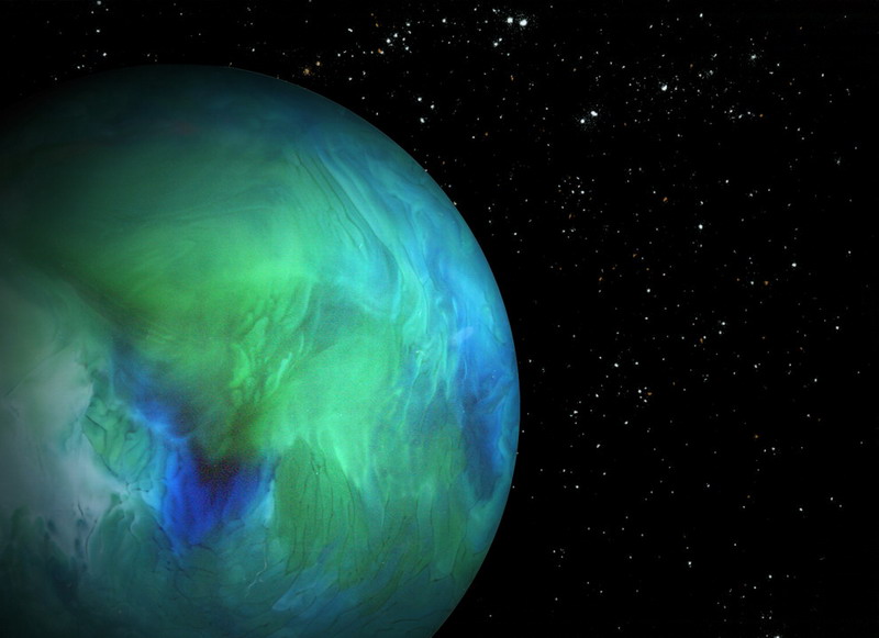 | Auch dieser Planet ist das Ergebnis des Scans einer mit farbiger Flüssigkeit befüllten Flasche. |