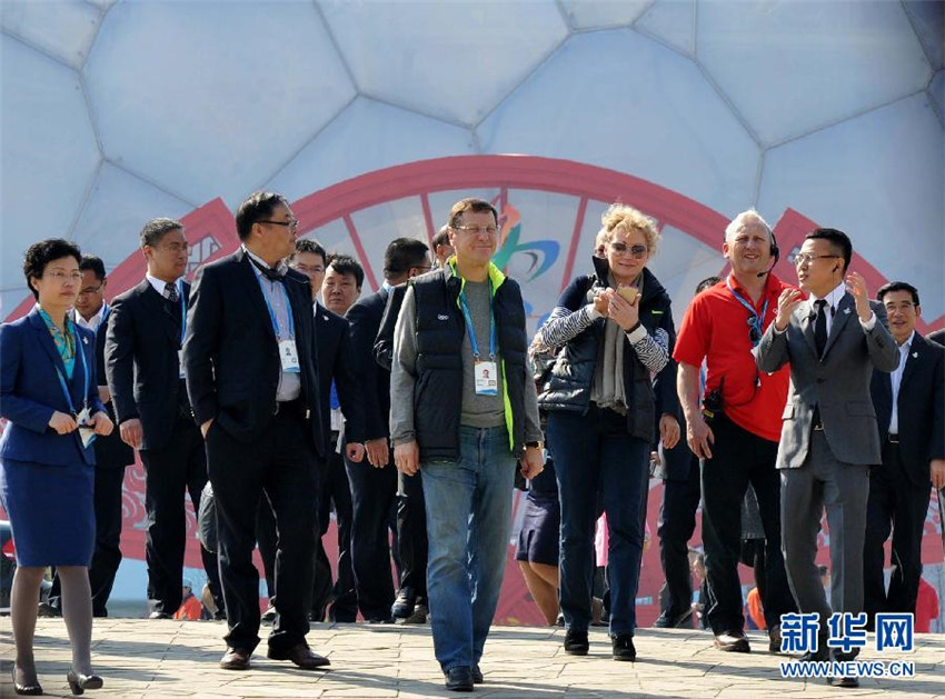| Die Inspektoren-Gruppe vor dem ?Wasserwürfel“. |