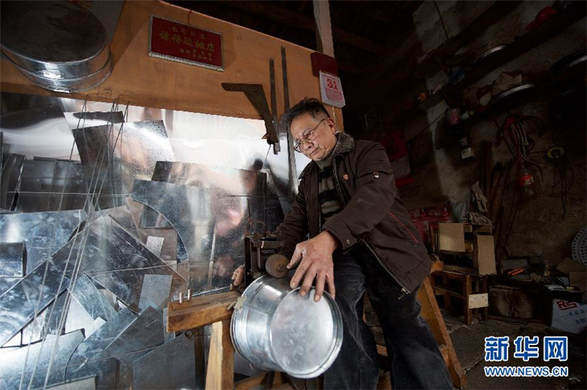 Li Weimao stellt in seinem kleinen Gesch?ft aus Eisen Trommeln her. Der 70-J?hrige hat die dazu notwendige Technik von seinem Vater gelernt.