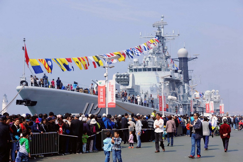 Im Hafen des Internationalen Segelzentrums der nord?stlichen Stadt Qingdao wurde der aktive Zerst?rer namens ?Harbin“ von der Nordseeflotte dem Publikum vorgestellt. Tausende neugierige Besucher gingen an Bord des Kriegsschiffes.