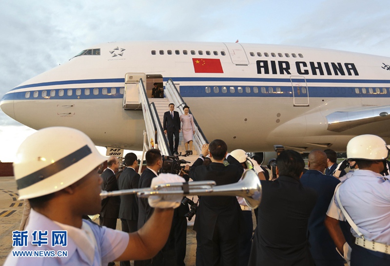 Chinas Ministerpr?sident Li Keqiang traf am Montagabend in Begleitung seiner Frau Cheng Hong in der brasilianischen Hauptstadt Brasilia ein. Es ist der erste offizielle Besuch von Li als chinesischer Ministerpr?sident in Lateinamerika. Li und seine Frau wurden am Flughafen von Li Jinzhang, dem chinesischen Botschafter in Brasilien, und vielen hochrangigen brasilianischen Regierungsbeamten empfangen.