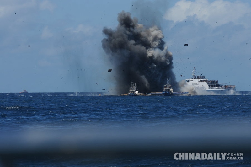 Indonesische Marine zerbombt chinesisches Fischerboot (3)