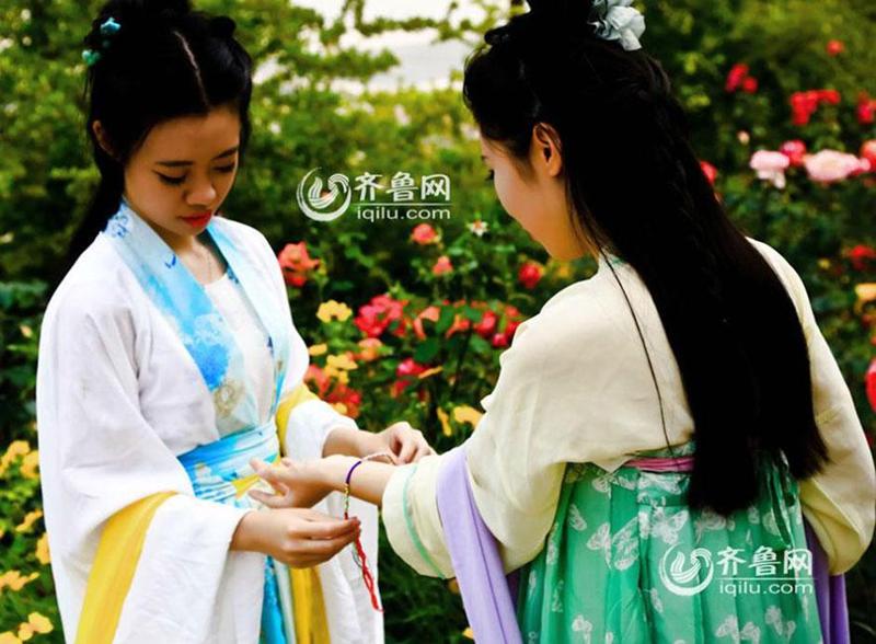 Studenten tragen klassische Kleidung für das Drachenbootfest (4)
