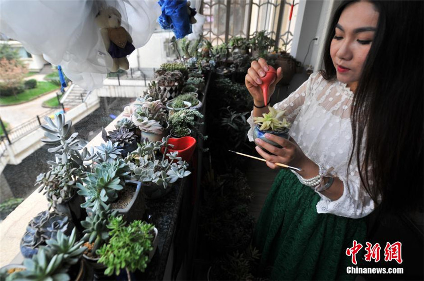 | Tian Mixi hat mehr als einhundert Sukkulenten zu Hause. Ihr allt?gliches Leben ist schon seit L?ngerem untrennbar mit den sü?en Pflanzen verbunden. |