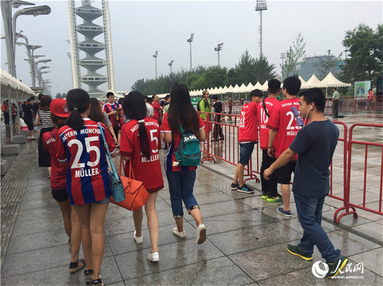 | Bereits drei Stunden vor Spielbeginn sind überall um das Nationalstadion herum Fans des FC Bayern zu sehen. |