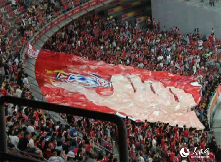 | Eine selbstgemachte Fahne als Symbol für die grenzenlose Leidenschaft der chinesischen Fans. |