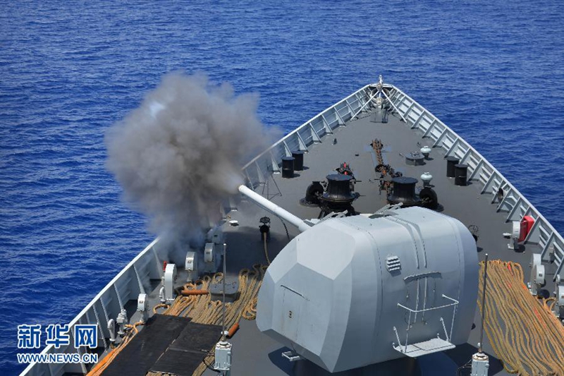 | Die Kanone der ?Changchun“ er?ffnet das Feuer. |