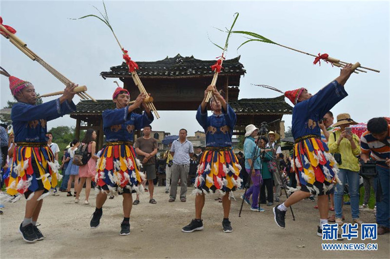 | Der Lusheng-Tanz wird mit der Mundorgel Lusheng getanzt. |