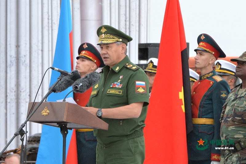 | Der russische Verteidigungsminister Sergei Schoigu h?lt an der Er?ffnungszeremonie eine Rede. |