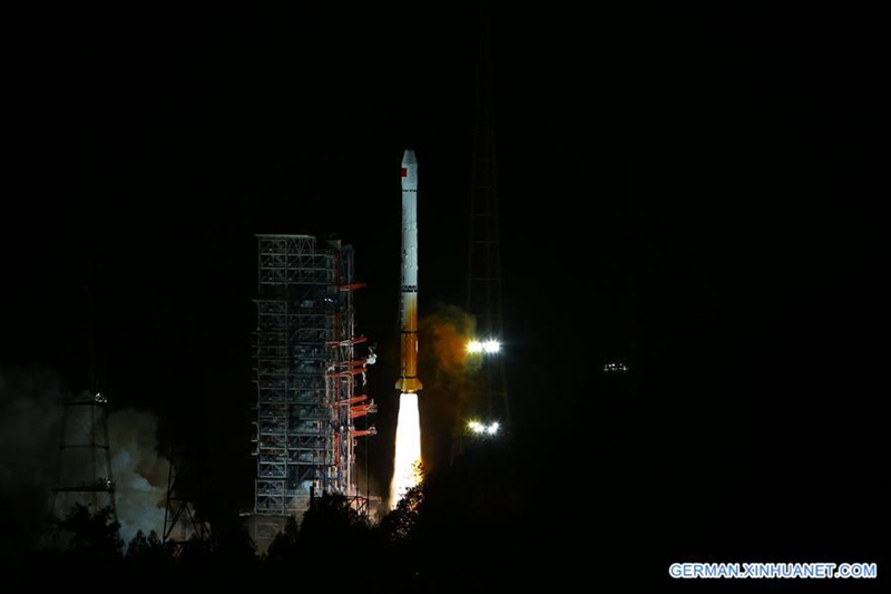 Eine Tr?gerrakete des Typs Langer Marsch 3A mit dem 22. Satellit von BeiDou-Navigationssatellitensystem (BDS) an Bord hob vom Xichang Satellitenstartzentrum in der südwestchinesischen Provinz Sichuan ab, 30 M?rz 2016. China startete am Mittwoch um 4.11 Uhr morgens einen Satelliten, um sein globales Navigations- und Ortungsnetzwerk zu unterstützen.