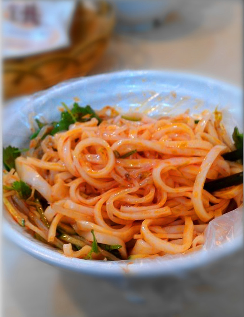 ?Ganmian“-Bandnudeln aus der Region Shaanxi sind ein einzigartiger traditioneller Imbiss, für den insbesondere die westliche Gegend von Baoji berühmt ist. So wurden die ?Ganmian“-Bandnudeln von Baoji in Qishan im Jahr 2011 in die Kategorie der berühmten Gerichte Chinas aufgenommen.