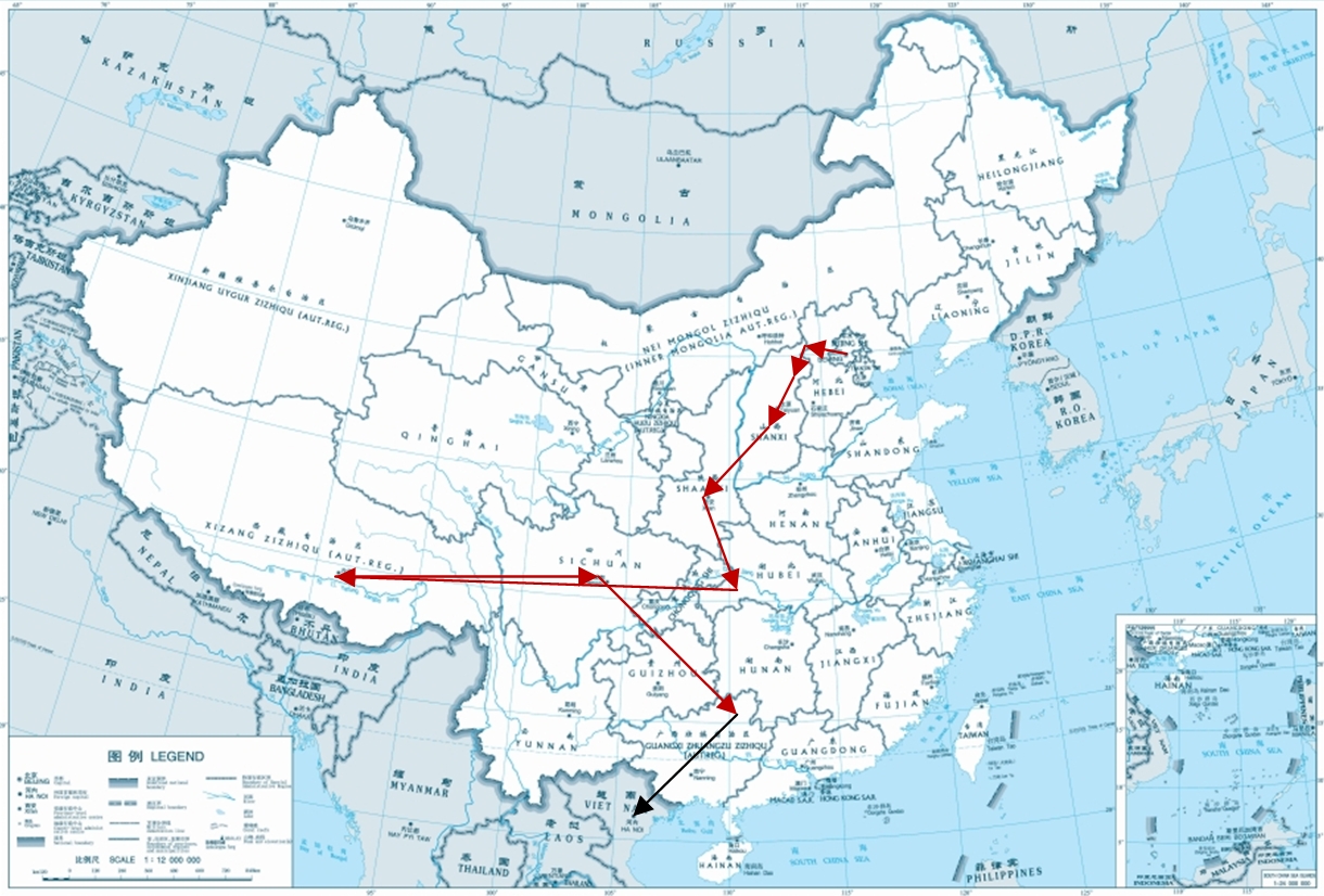 Ungef?hre Reiserichtungen in der Volksrepublik.