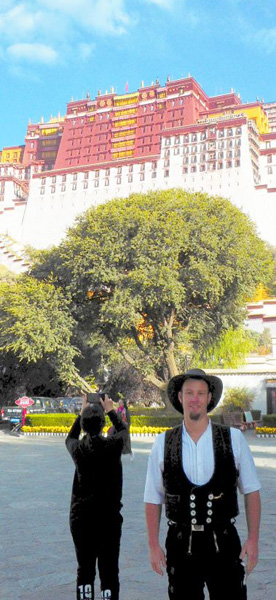 Daniel Sattler vor dem Potala-Palast in Lhasa, der Hauptstadt des Autonomen Gebiets Tibet.
