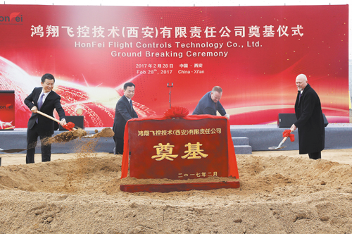 Am 28. Februar 2017 wurde den Grundstein der HongFei Flight Controls Technology Co., Ltd. in der Hightech-Zone Xi’an gelegt. Der Parteisekret?r der Hightech-Zone Li Yi hat den Beginn des Bauprojekts der Bürofl?che erkl?rt.