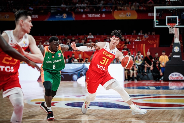 Der chinesische Nationalspieler Zhelin Wang beim WM-Spiel gegen die Elfenbeinküste am 31. August 2019. (Foto von fiba.basketball)