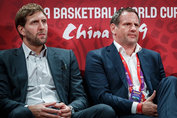 Dirk Nowitzki (l.) beim WM-Spiel China gegen die Elfenbeinküste am 31. August 2019 (Foto von fiba.basketball)