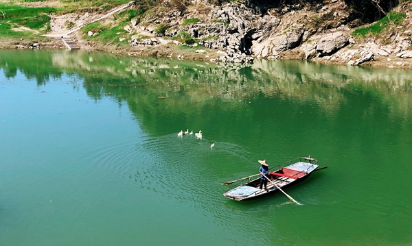 Wan Qizhen, der F?hrmann der dritten Generation der Familie Wan, bef?rdert seit fast 30 Jahren Dorfbewohner freiwillig. (Medienkonvergenzzentrum des Landkreises Jianshi/Su Xi)