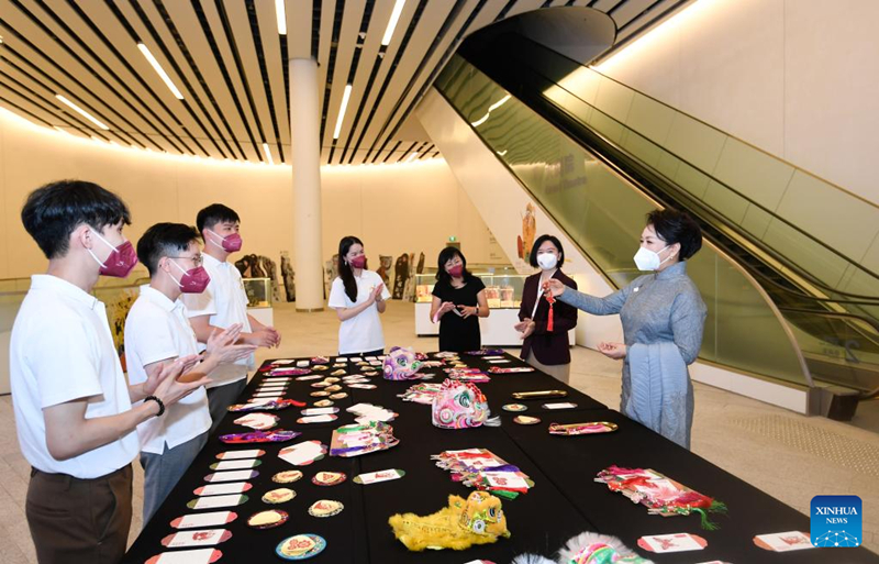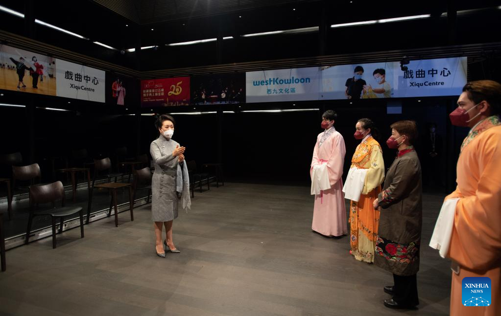 Xi Jinpings Ehefrau, Peng Liyuan, besuchte am Nachmittag das Opernzentrum im West Kowloon Cultural District. Dabei informierte sie sich über die Situation und den Entwicklungsprozess des Kulturbezirks. Peng ermutigte die jungen Hongkonger, die ausgezeichnete chinesische traditionelle Kultur eingehend zu verstehen, zu überliefern und zu entfalten.