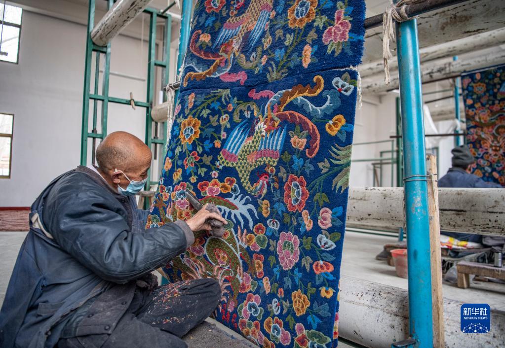 Der 63-J?hrige Phurjung arbeitet in der Teppichfabrik Gyantse. Er erkl?rt, das Schneiden sei ein wichtiger Schritt bei der Teppichherstellung, um die Muster der Teppiche dreidimensional und bunt zu machen. In der Regel dauere der Prozess etwa fünf Tage.