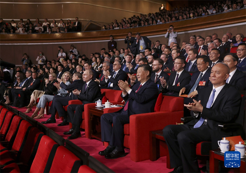Der chinesische Staatspr?sident Xi Jinping und der russische Pr?sident Wladimir Putin haben am Donnerstagnachmittag im Nationalen Zentrum für Darstellende Künste (NCPA) an der Er?ffnungszeremonie des ?Chinesisch-Russischen Kulturjahres“ und an einem Sonderkonzert teilgenommen, um den 75. Jahrestag der Aufnahme diplomatischer Beziehungen zwischen China und Russland zu feiern.