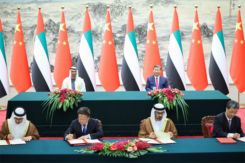 Die beiden Seiten tauschten auch ihre Ansichten über den israelisch-pal?stinensischen Konflikt aus. Xi betonte, dass es unbedingt notwendig sei, den Krieg zu beenden und die humanit?re Krise durch einen umfassenden Waffenstillstand zu lindern. Die internationale Gemeinschaft sollte sich einstimmig für eine baldige Verhandlungsl?sung der pal?stinensischen Frage auf der Grundlage der ?Zwei-Staaten-L?sung“ einsetzen. China und die VAE teilten dieselbe Position in der Pal?stina-Frage und sollten sich gemeinsam für eine umfassende, gerechte sowie dauerhafte L?sung des Problems einsetzen.