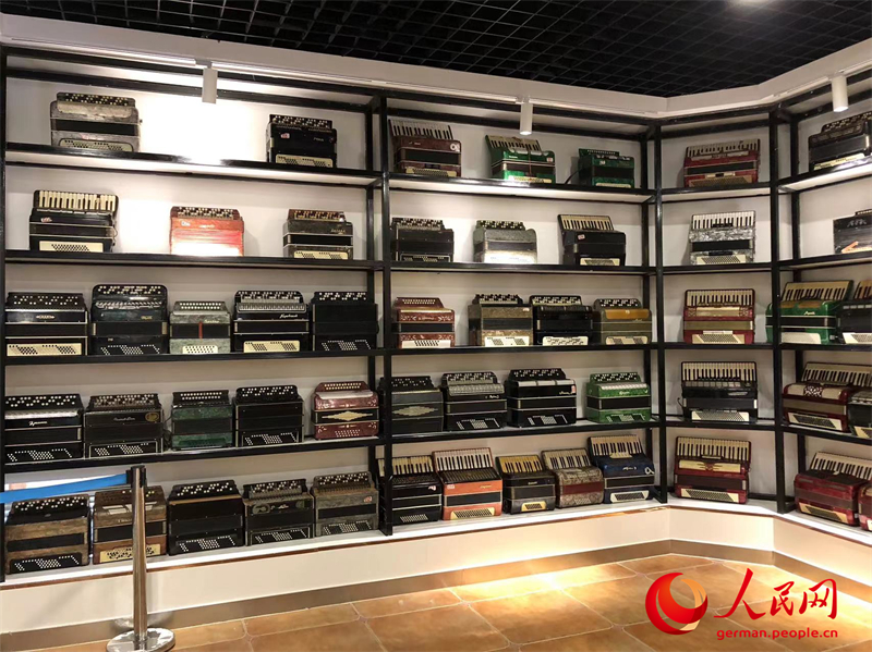 Im Ausstellungsraum des Museums führen Musiker verschiedener Ethnien Stücke auf dem Akkordeon auf. (Foto: People′s Daily Online/Oliver Fritzsch)