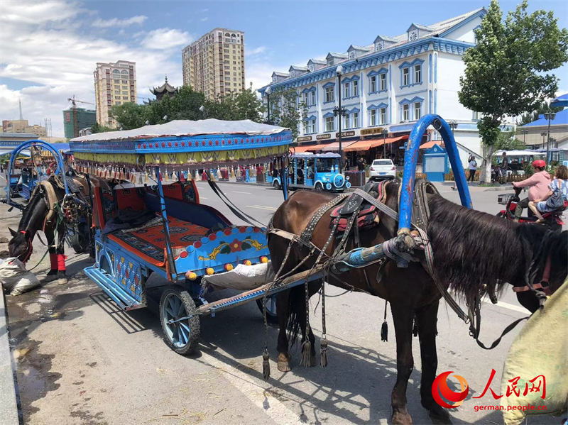 Pferdewagen warten auf Kundschaft. (Foto: People’s Daily Online/Oliver Fritzsch)