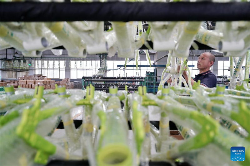 Ein Arbeiter tr?gt Bauteile in einer Fabrik für Kinderfahrr?der im Kreis Pingxiang in der nordchinesischen Provinz Hebei, 19. August 2024. (Xinhua/Mu Yu)