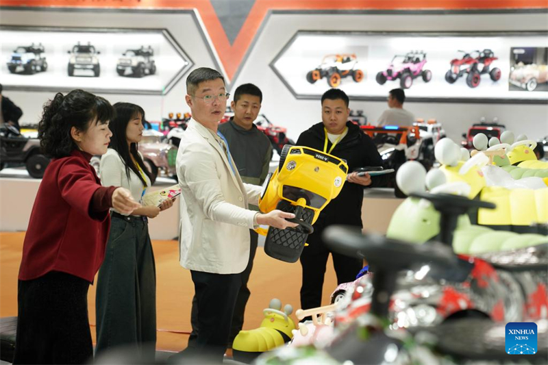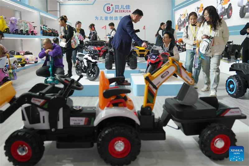 Menschen besuchen die 18. internationale Messe für Fahrr?der, Kinderwagen und Spielzeug im Kreis Pingxiang in der nordchinesischen Provinz Hebei, 26. Oktober 2024. (Xinhua/Mu Yu)
