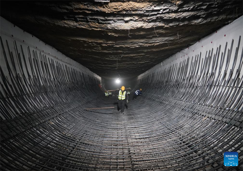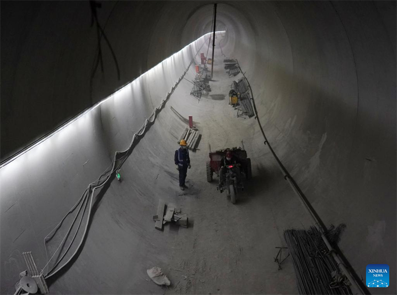 Arbeiter bei Bauarbeiten an der Station Hongmiao der U-Bahnlinie 22 in Beijing, 19. Februar 2025. (Xinhua/Zhang Chenlin)