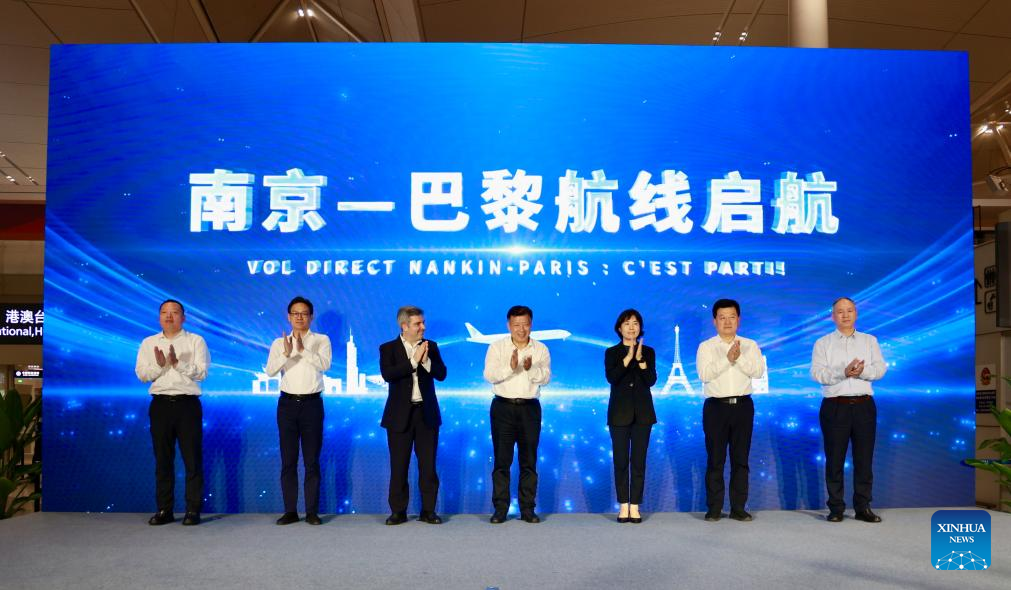 Die Feier zur Er?ffnung der Direktflugverbindung von Nanjing nach Paris fand am 8. Juli 2025 auf dem internationalen Flughafen Nanjing-Lukou in Nanjing in der ostchinesischen Provinz Jiangsu statt. (Foto: Fang Tianxiang/Xinhua)