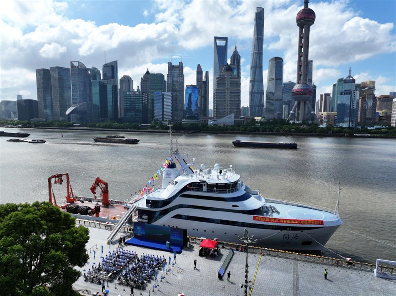China hat am 13. Juli 2025 in Shanghai das erste intelligente wissenschaftliche Forschungsschiff der Ozeanklasse ausgeliefert. (Foto von Xinhua)