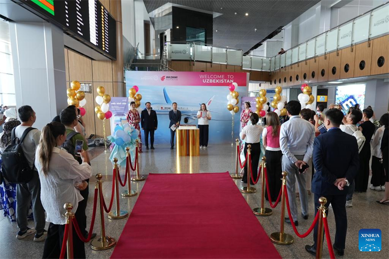 Eine Zeremonie zur Feier der ersten Direktflugverbindung von Air China zwischen Urumqi und Taschkent findet am 22. Juli 2025 auf dem Internationalen Flughafen Taschkent in Taschkent, Usbekistan, statt. (Foto von Zafar Khalilov/Xinhua)