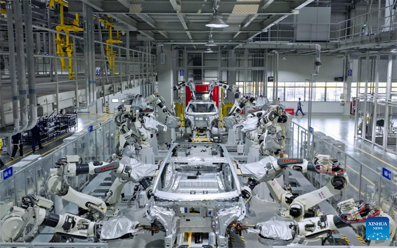 Im Inneren des digitalen und intelligenten Werkes von China Changan Automobile Group Co., Ltd. in der südwestchinesischen Stadt Chongqing, in dem das Elektroauto AVATR produziert wird. 28. Juli 2025. (Foto: Xinhua/Chen Cheng)