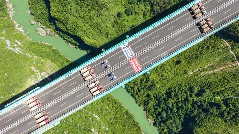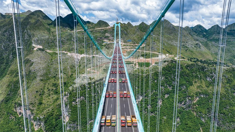 Die Brücke ist auch ein wichtiges Bindeglied einer Schnellstra?e und Teil der laufenden Bemühungen der Provinz Guizhou, ihr zerklüftetes Landesinnere durch moderne Autobahnen zu verbinden.