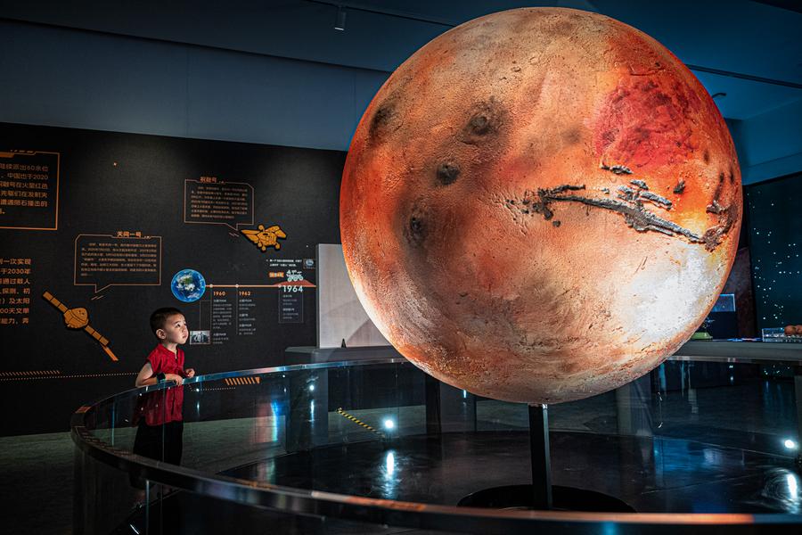 Ein Junge besucht eine Science-Fiction-Erlebnisausstellung zum Thema Planetenwissenschaft im China Building Science Museum in Wuhan in der zentralchinesischen Provinz Hubei. 18. Juli 2025. (Foto: Xinhua/Xiao Yijiu)