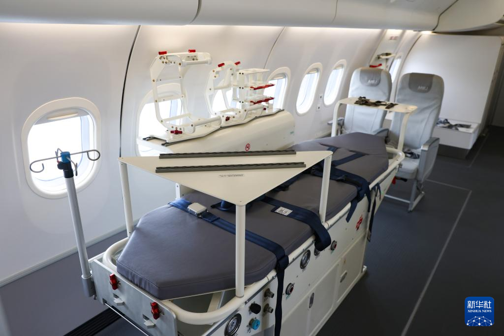 Das medizinische Rettungsflugzeug C909 mit einer maximalen Nutzlast von zehn Tonnen und einer Reichweite von 3.700 Kilometern kann laut seinem Entwickler Commercial Aircraft Corporation of China Ltd. von Flugh?fen in gro?er H?he aus operieren und für Aufgaben wie den Transport von medizinischen Teams, die Hilfe in abgelegenen Gebieten und den Transfer von Patienten umkonfiguriert werden.