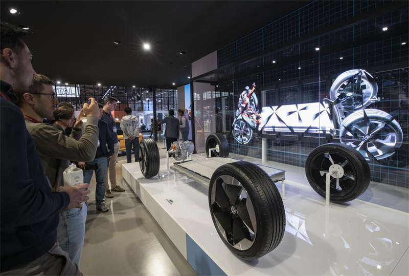Besucher im Ausstellungsbereich von Volkswagen w?hrend der IAA Mobility 2025 in München, Deutschland, am 9. September 2025. (Xinhua/Zhang Fan)