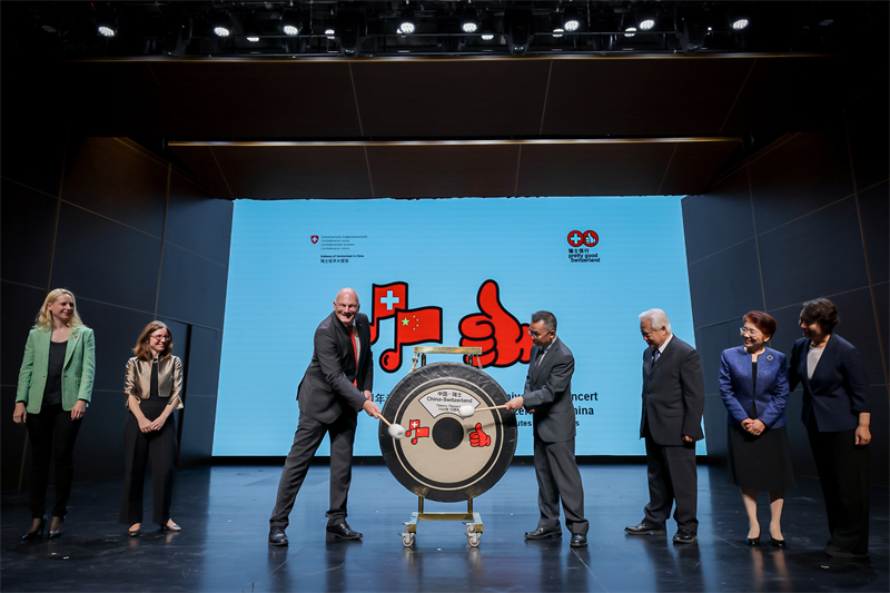 Jürg Burri, Schweizer Botschafter in China, und Lu Shaye, Sonderbeauftragter der chinesischen Regierung für europ?ische Angelegenheiten, nahmen an dem Konzert teil und schlugen vor der Aufführung gemeinsam einen Gong, um die chinesisch-schweizerische Freundschaft zu symbolisieren.