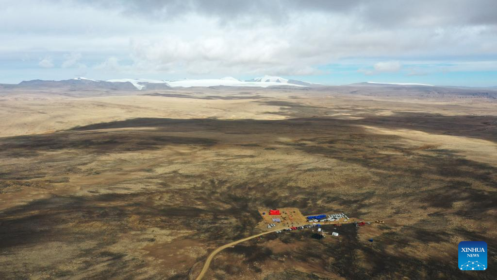 Ein am 20. September 2025 aufgenommenes Drohnenfoto zeigt den Startpunkt für den Bau eines neuen gro?en astronomischen Beobachtungsprojekts, des 15-Meter-Submillimeter-Teleskops Xue-shan-mu-chang (XSMT) in Delingha im Nordwesten der chinesischen Provinz Qinghai. (Xinhua/Chen Jie)