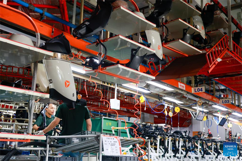 Die Produktionslinie von YADEA im Industriepark für Elektroroller im Bezirk Xishan, Wuxi, in der ostchinesischen Provinz Jiangsu am 16. September 2025. (Xinhua/Liu Jiaqi)