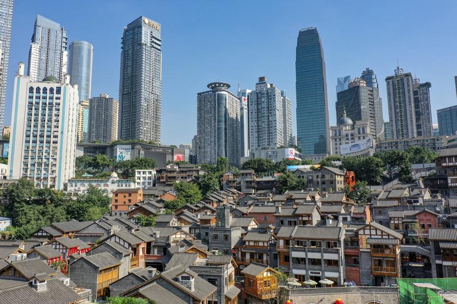 Das Gesch?ftsviertel Jiefangbei (im Hintergrund) und Shibati im südwestchinesischen Chongqing. (Xinhua/Huang Wei)