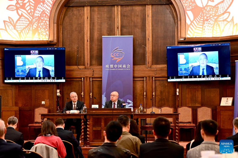 Liu Jiandong, Vorsitzender der chinesischen Handelskammer in der EU, h?lt am 12. November 2025 in Brüssel, Belgien, eine Rede anl?sslich der Ver?ffentlichung eines Berichts. (Xinhua/Lyu You)